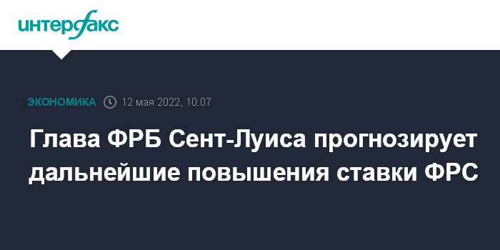 Глава ФРБ Сент-Луиса прогнозирует дальнейшие повышения ставки ФРС