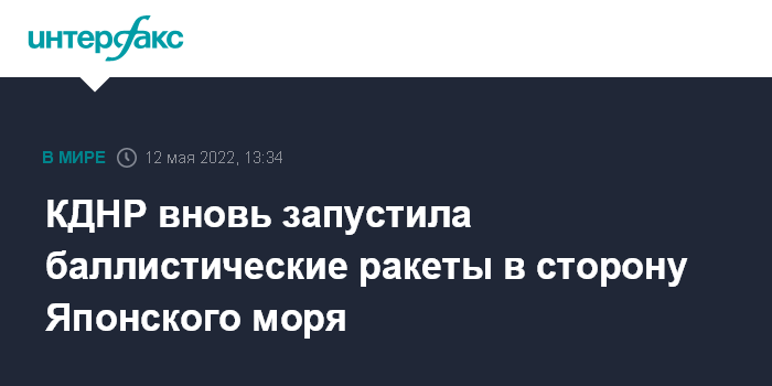 Москва. 12 мая. INTERFAX.RU - Северная Корея в четверг произвела пуск баллистических ракет в сторону Японского моря, сообщают южнокорейские СМИ со ссылкой на заявление Объединенного комитета начальников штабов ВС Южной Кореи.