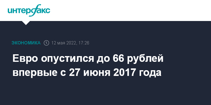 Евро опустился до 66 рублей впервые с 27 июня 2017 года
