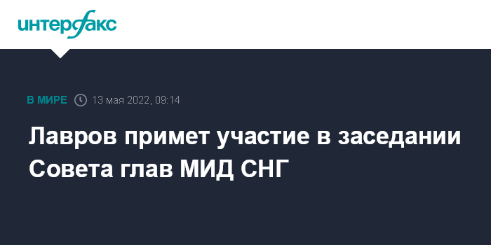 Москва. 13 мая. INTERFAX.RU - Глава МИД РФ Сергей Лавров примет участие в заседании Совета министров иностранных дел стран СНГ, которое пройдёт в пятницу в Душанбе.
