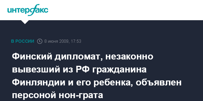 Финский дипломат, незаконно вывезший из РФ гражданина Финляндии и его ребенка, объявлен персоной нон-грата