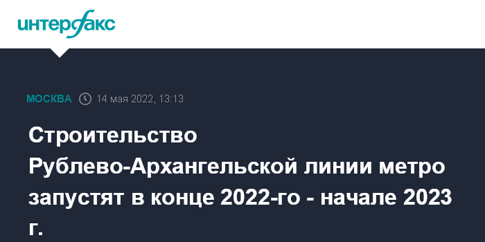 Строительство Рублево-Архангельской линии метро запустят в конце 2022-го - начале 2023 г.