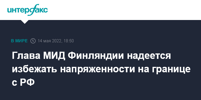 Москва. 14 мая. INTERFAX.RU - Финляндия не видит в данный момент проблем в районе границы с Россией и надеется, что так будет и дальше, несмотря на стремление Хельсинки вступить в НАТО, заявил в субботу глава финского МИД Пекка Хаависто.