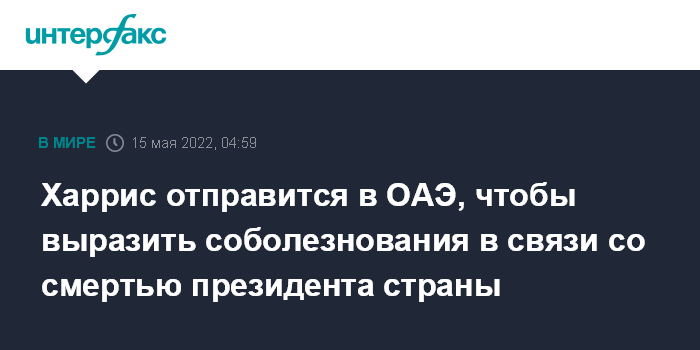 Харрис отправится в ОАЭ, чтобы выразить соболезнования в связи со смертью президента страны