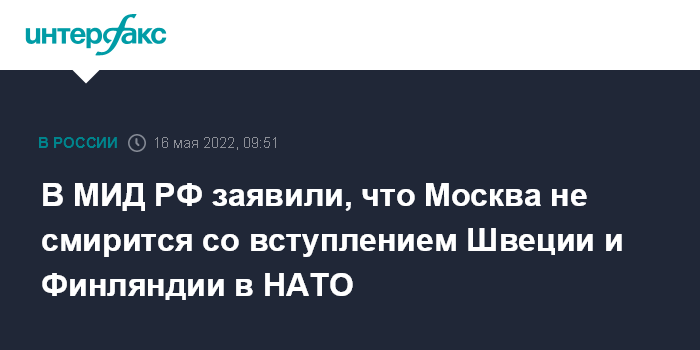 В МИД РФ заявили, что Москва не смирится со вступлением Швеции и Финляндии в НАТО