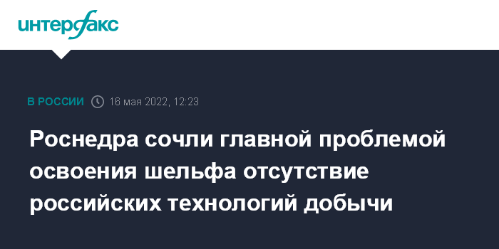 Москва. 16 мая. INTERFAX.RU - Основная проблема освоения шельфовых месторождений – отсутствие российских технологий добычи, заявил в интервью "Интерфаксу" руководитель Федерального агентства по недропользованию (Роснедра) Евгений Петров.