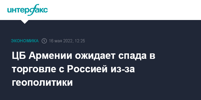 ЦБ Армении ожидает спада в торговле с Россией из-за геополитики