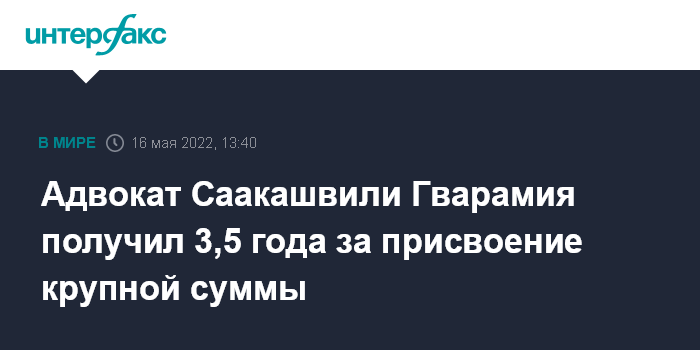 Москва. 16 мая. INTERFAX.RU - Генеральный директор телеканала "Мтавари архи" Николоз Гварамия был признан виновным и осужден на тюремное заключение сроком на три года и шесть месяцев на судебном процессе в понедельник.