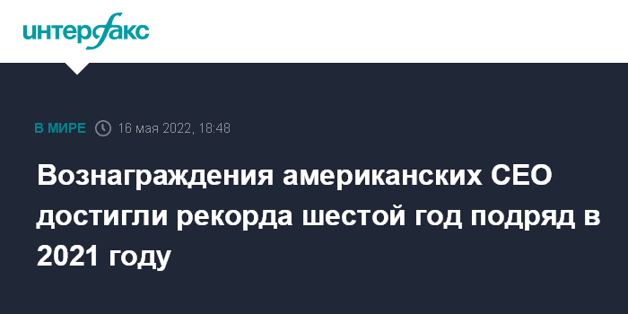 Вознаграждения американских CEO достигли рекорда шестой год подряд в 2021 году