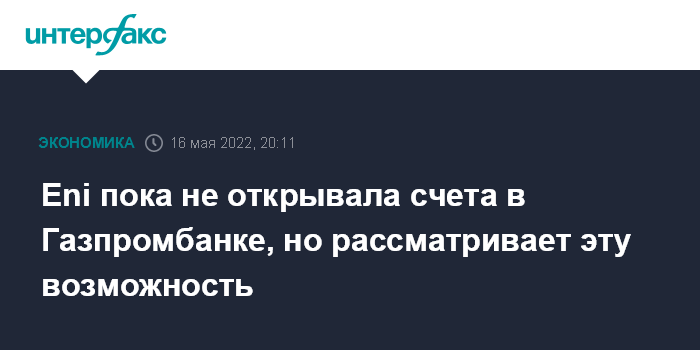 Eni пока не открывала счета в Газпромбанке, но рассматривает эту возможность