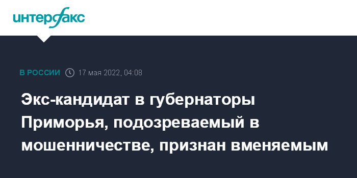 Экс-кандидат в губернаторы Приморья, подозреваемый в мошенничестве, признан вменяемым