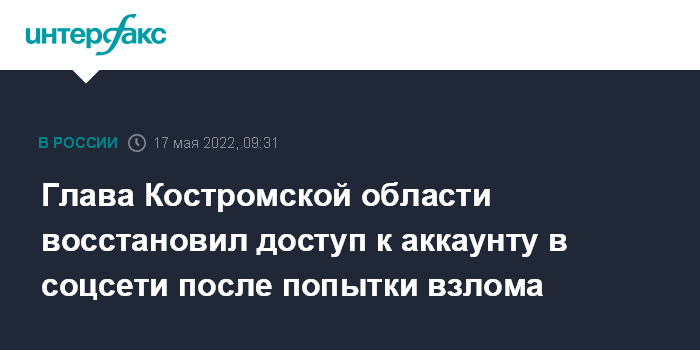 Глава Костромской области восстановил доступ к аккаунту в соцсети после попытки взлома
