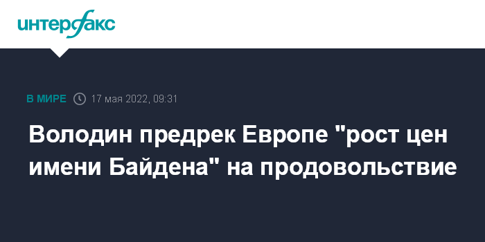 Володин предрек Европе "рост цен имени Байдена" на продовольствие