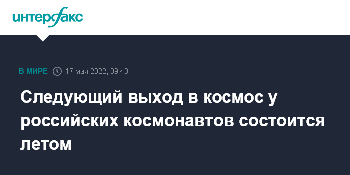 Москва. 17 мая. INTERFAX.RU - Российские космонавты в следующий раз выйдут в космос летом, сообщили в пресс-службе ракетно-космической корпорации "Энергия".