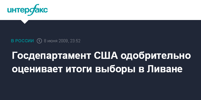 Вашингтон. 8 июня. ИНТЕРФАКС - Как "важнейший шаг вперед" в процессе достижения Ливаном подлинной независимости и суверенитета расценил воскресные выборы в этой ближневосточной стране государственный департамент США.