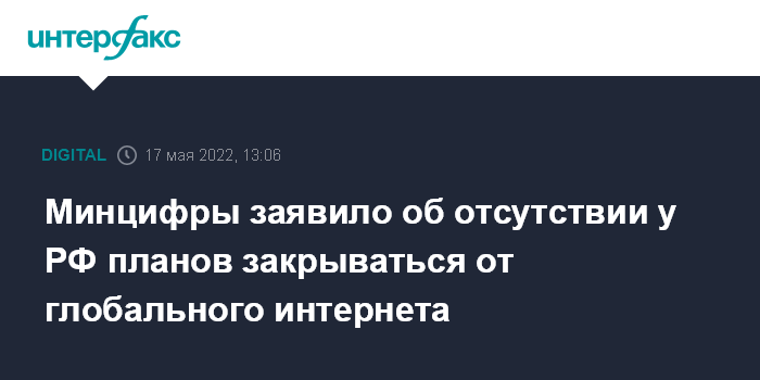 Минцифры заявило об отсутствии у РФ планов закрываться от глобального интернета