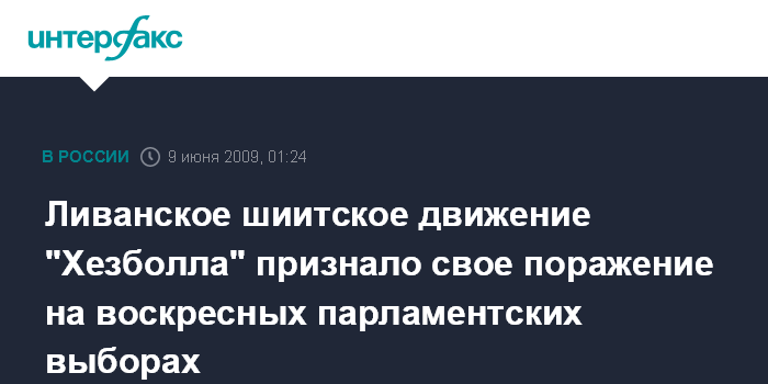 Москва. 9 июня. ИНТЕРФАКС - Лидер ливанской шиитской организации "Хезболла", шейх Хасан Насралла согласился с итогами воскресных парламентских выборов в Ливане, передает британская телерадиокорпорация Би-би-си.