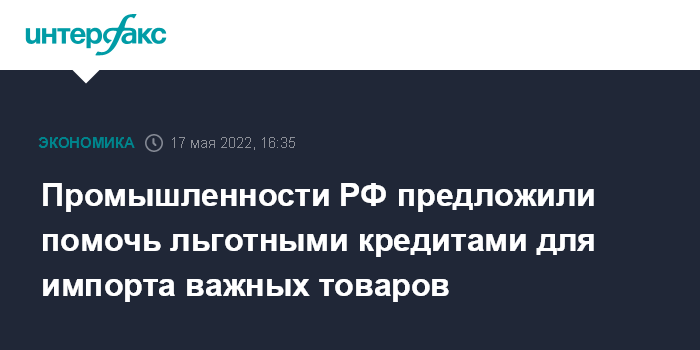 Москва. 17 мая. INTERFAX.RU - В России планируют запустить программу льготного кредитования промышленности для закупки приоритетных импортных товаров, программа будет аналогичной уже действующей в отношении системообразующих предприятий.