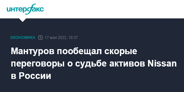 Москва. 17 мая. INTERFAX.RU - Переговоры о дальнейшей судьбе активов иностранных автоконцернов, приостановивших производство в РФ на длительный срок, продолжатся в ближайшее время. Одним из первых на очереди будет Nissan, сообщил глава Минпромторга РФ Денис Мантуров журналистам.