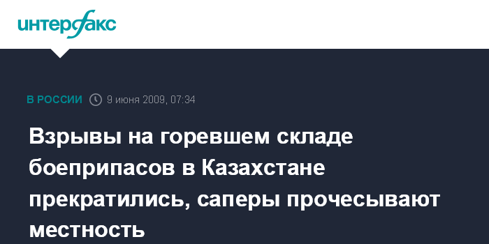 Алма-Ата. 9 июня. ИНТЕРФАКС-КАЗАХСТАН - К утру вторника прекратились взрывы снарядов на складе боеприпасов в окрестностях Алма-Аты, на котором в понедельник вечером возник пожар, сообщил агентству "Интерфакс-Казахстан" источник в службах по ЧС Алма-Атинской области Казахстана.