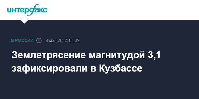 Москва. 18 мая. INTERFAX.RU - Подземный толчок магнитудой 3,1 зарегистрирован в Кемеровской области, сообщает Алтае-Саянский филиал Единой геофизической службы РАН.