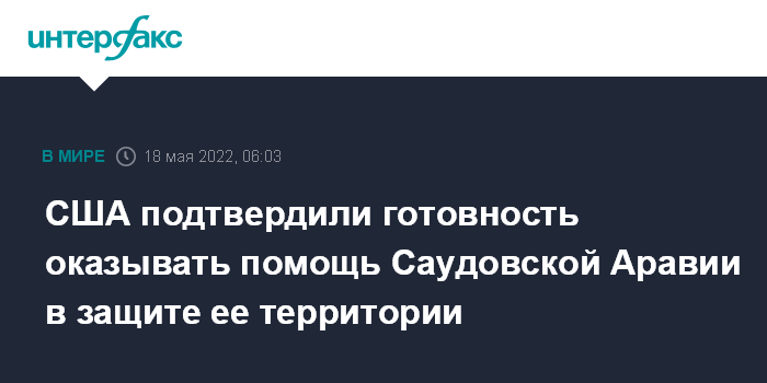США подтвердили готовность оказывать помощь Саудовской Аравии в защите ее территории
