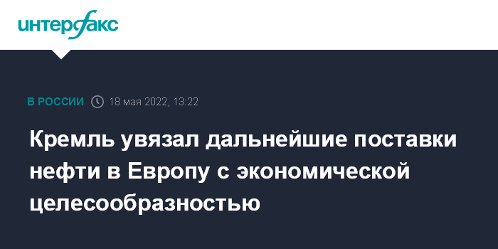 Москва. 18 мая. INTERFAX.RU - В Москве вопрос о продолжении поставок нефти в Европу, если страны "Большой семерки" введут на нее дополнительные пошлины, будут решать в зависимости от экономической целесообразности, заявил пресс-секретарь президента Дмитрий Песков.