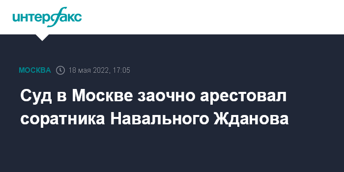 Суд в Москве заочно арестовал соратника Навального Жданова
