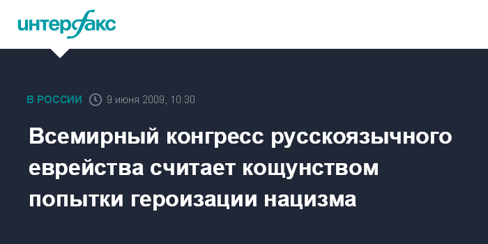 Всемирный конгресс русскоязычного еврейства считает кощунством попытки героизации нацизма