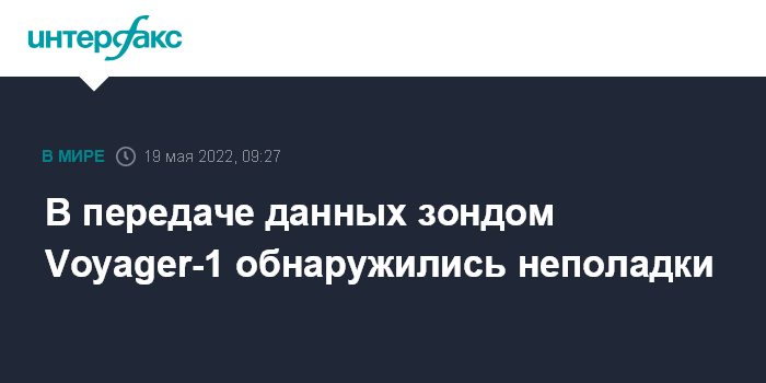 Москва. 19 мая. INTERFAX.RU - Специалисты лаборатории реактивного движения NASA отмечают неполадки в передаче телеметрических данных исследующим межзвездное пространство зондом Voyager-1, сообщается на сайте лаборатории.