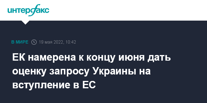 Москва. 19 мая. INTERFAX.RU - Канцлер ФРГ Олаф Шольц пообещал, что Еврокомиссия (ЕК) к концу июня даст оценку запросу Украины на вступление в ЕС.