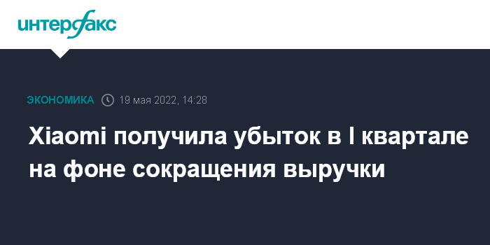 Москва. 19 мая. INTERFAX.RU - Китайский производитель электроники Xiaomi Corp в первом квартале 2022 года получил чистый убыток из-за роста расходов и потерь от инвестиций.