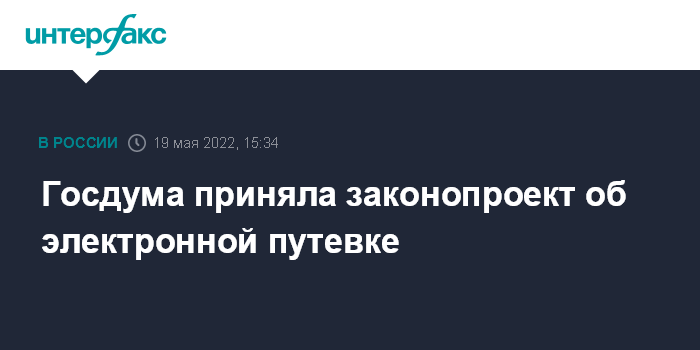 Москва. 19 мая. INTERFAX.RU - Депутаты Госдумы единогласно приняли во втором и третьем чтении законопроект о функционировании в России единой информационной системы "Электронная путевка", он должен вступить в силу 1 сентября 2022 года.