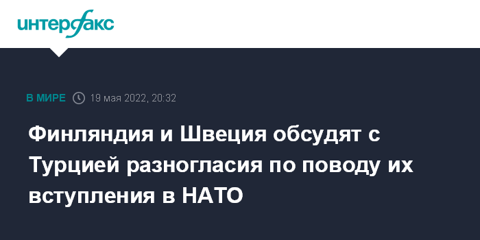 Москва. 19 мая. INTERFAX.RU - Финляндия и Швеция ведут диалог с Турцией и готовы обсуждать все разногласия по вопросу членства стран в НАТО, заявили премьер Швеции Магдалена Андерссон и президент Финляндии Саули Ниинистё в Белом доме после встречи с президентом США Джо Байденом.
