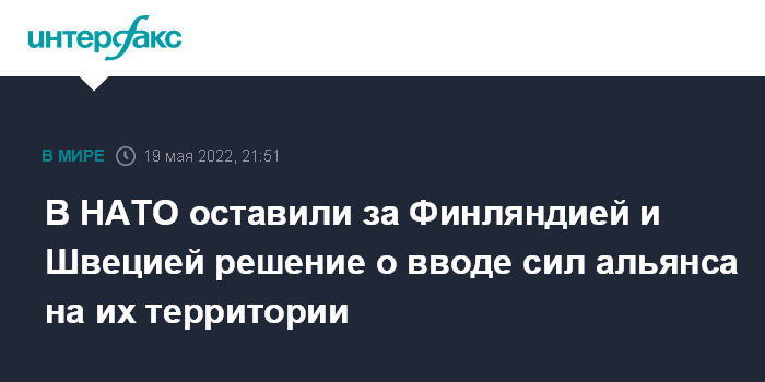 Если Швеция и Финляндия действительно станут членами НАТО, альянс будет обсуждать и с ними, хотят ли они размещения каких бы то ни было сил альянса у себя на территории, добавил Бауэр.