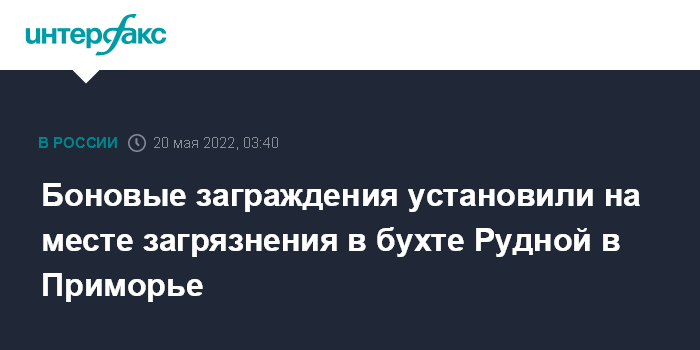 Москва. 20 мая. INTERFAX.RU - Боновые заграждения установили на месте загрязнения нефтепродуктами в бухте Рудной в Приморском крае, сообщил "Интерфаксу" директор приморского филиала Морспасслужбы Росморречфлота Иван Агаревский.