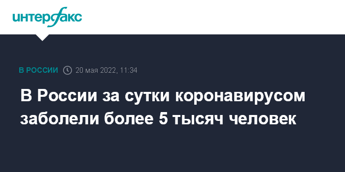 Москва. 20 мая. INTERFAX.RU - Суточный прирост новых заболевших коронавирусом в РФ составил 5 089 новых случаев, следует из данных оперативного штаба, обнародованных в пятницу.