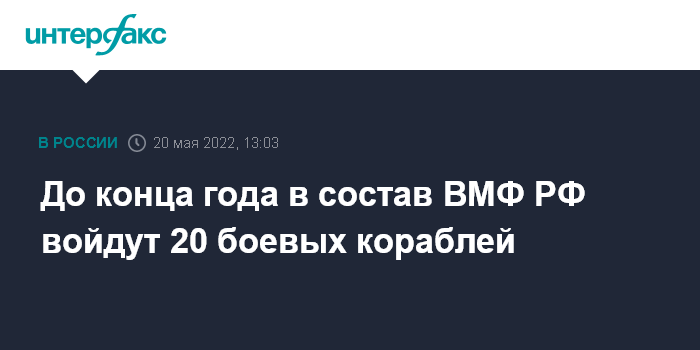 Москва. 20 мая. INTERFAX.RU - Военно-морской флот России в этом году примет в свой состав 20 боевых кораблей, сообщил заместитель председателя правительства РФ Юрий Борисов.