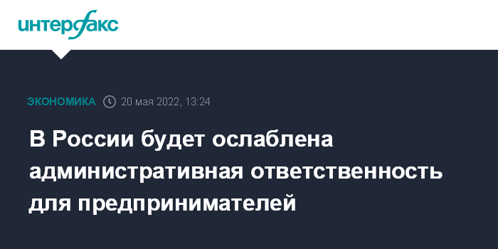 Москва. 20 мая. INTERFAX.RU - Правительство РФ направило в Госдуму законопроект о либерализации административной ответственности для предпринимателей, сообщает пресс-служба кабинета министров.