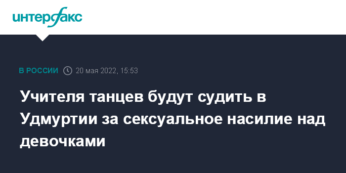 Москва. 20 мая. INTERFAX.RU - Преподаватель брейк-данса из Ижевска предстанет перед судом по обвинению в педофилии, сообщает пресс-служба следственного управления СКР по Удмуртии в пятницу.