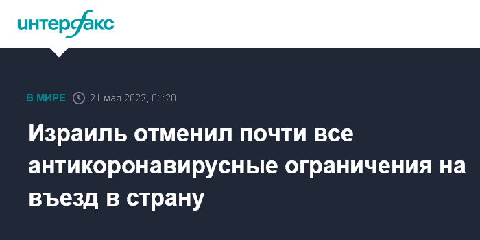 Ранее израильские власти сообщили об отмене с 21 мая ПЦР-тестирования на коронавирус по прибытии. В апреле было отменено требование о ношении масок в помещениях и открытых пространствах. Требование о ношении маски во время международного перелета сохраняется.
