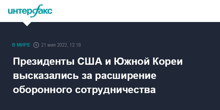 Москва. 21 мая. INTERFAX.RU - США и Южная Корея, принимая во внимание ситуацию на Корейском полуострове, намерены и далее развивать оборонное сотрудничество.