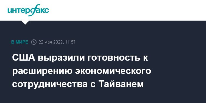 США выразили готовность к расширению экономического сотрудничества с Тайванем