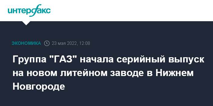 Москва. 23 мая. INTERFAX.RU - Нижегородский литейный завод (НЛЗ) группы "ГАЗ", построенный в 2021 году, начал серийный выпуск литья для двигателей внутреннего сгорания и автокомпонентов, сообщает пресс-служба группы.