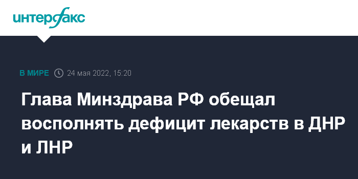 21 мая Мурашко сообщил, что Россия поставила свыше 5 тыс. тонн медикаментов в ДНР и ЛНР в последние годы.