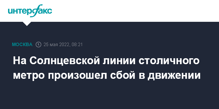 Москва. 25 мая. INTERFAX.RU - Сбой в движении произошел в утренний час пик на Солнцевской линии метро, сообщается в телеграм-канале столичного департамента транспорта в среду.