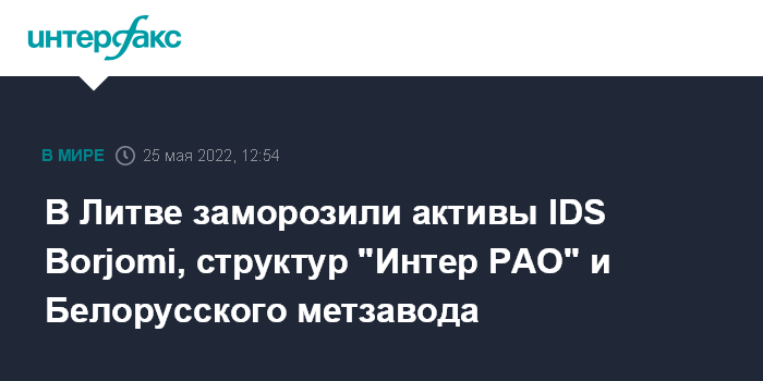 В Литве заморозили активы IDS Borjomi, структур "Интер РАО" и Белорусского метзавода