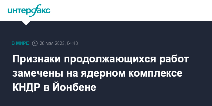 Москва. 26 мая. INTERFAX.RU - Северная Корея, вероятно, продолжает работы на своем главном ядерном комплексе в Йонбене, сообщает сайт 38 North, специализирующийся на исследованиях КНДР.