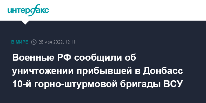 Военные РФ сообщили об уничтожении прибывшей в Донбасс 10-й горно-штурмовой бригады ВСУ