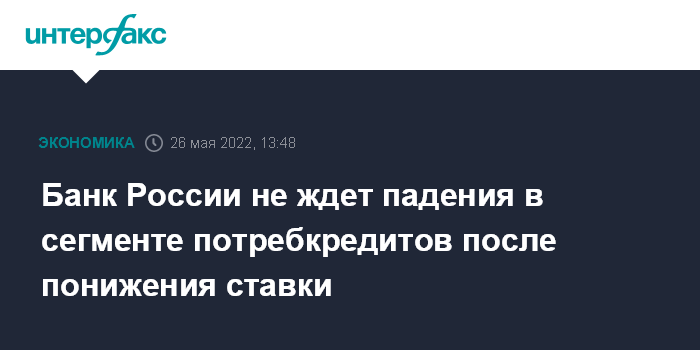 Банк России не ждет падения в сегменте потребкредитов после понижения ставки